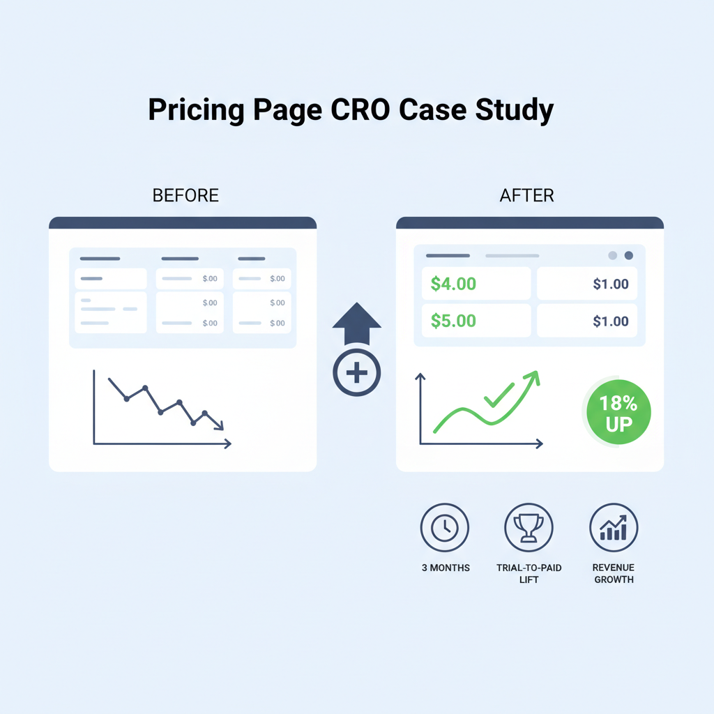 Result: the variant increased CTA clicks to signup by 18% and improved the trial-to-paid rate by 6% for users originating from organic search. The qualitative reason: visitors immediately recognized the business outcome and self-qualified faster. This result aligns with a common pricing page case study finding: clear outcome-focused headlines increase downstream conversions.